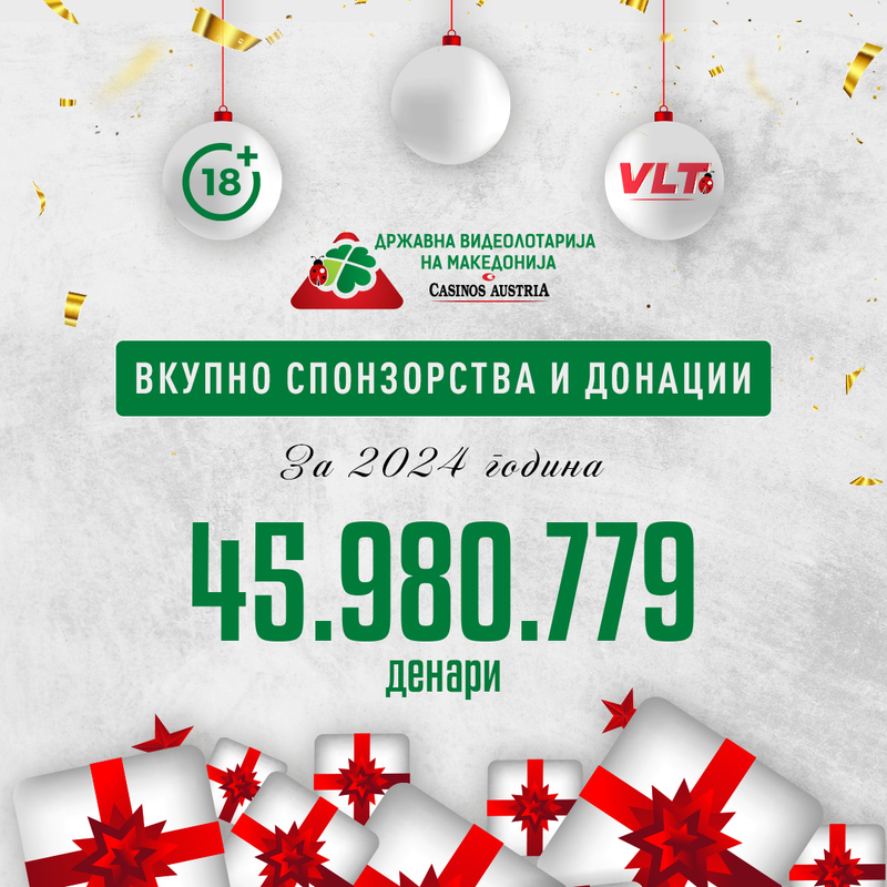 ИГРАЈ СО НАЈДОБРИТЕ: ВИДЕОЛОТАРИЈА ВО 2024 ИЗДВОИ 44.980.779 ЗА СПОНЗРСТВА И ДОНАЦИИ