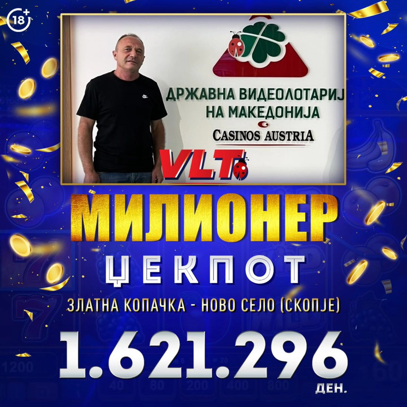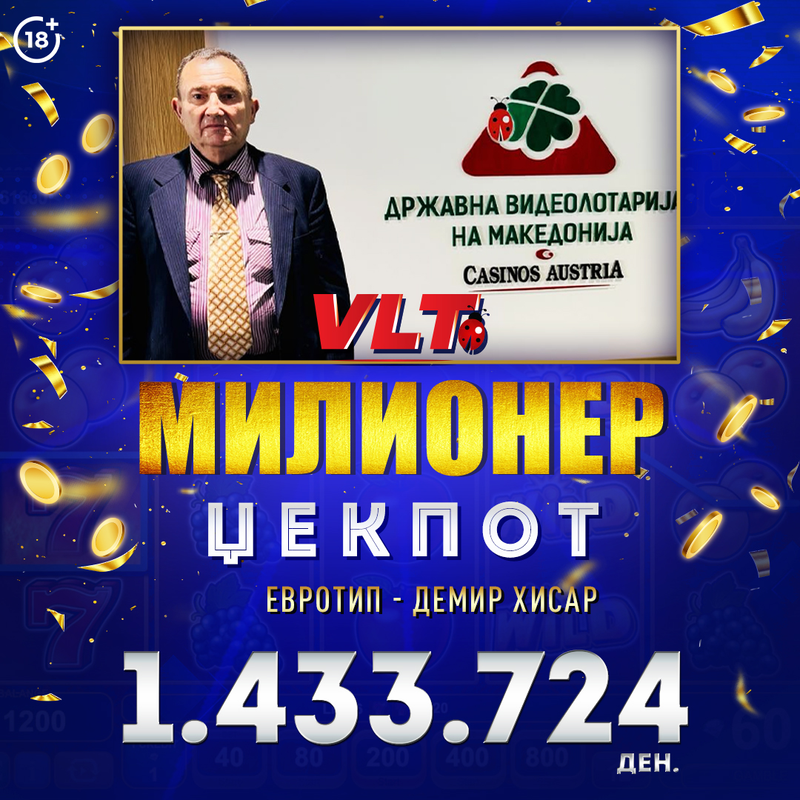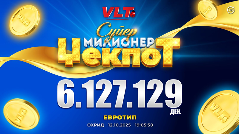 СРЕЌНИ ВЛТ ВЕСТИ: ИГРАЧ ОД СКОПЈЕ ОСВОИ СУПЕР МИЛИОНЕР ЏЕКПОТ ВРЕДЕН 6.903.339 ДЕНАРИ
