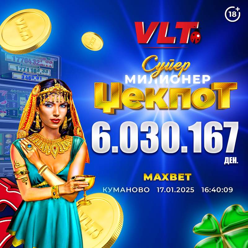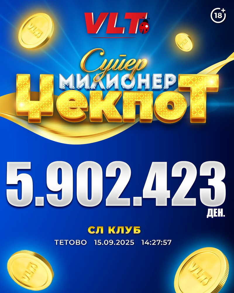 СРЕЌНИ ВЛТ ВЕСТИ: ИГРАЧ ОД ТЕТОВО ОСВОИ СУПЕР МИЛИОНЕР ЏЕКПОТ ВРЕДЕН 5.902.423 ДЕНАРИ