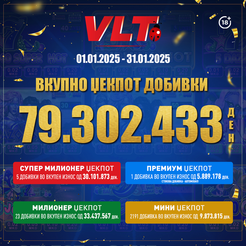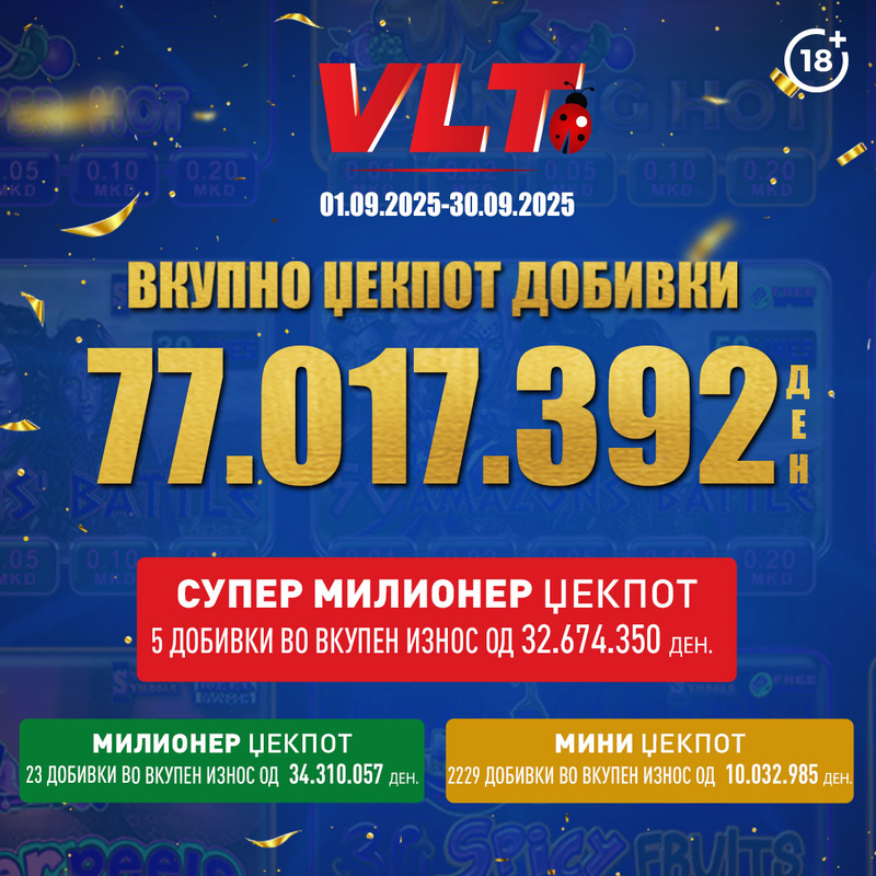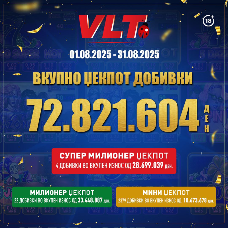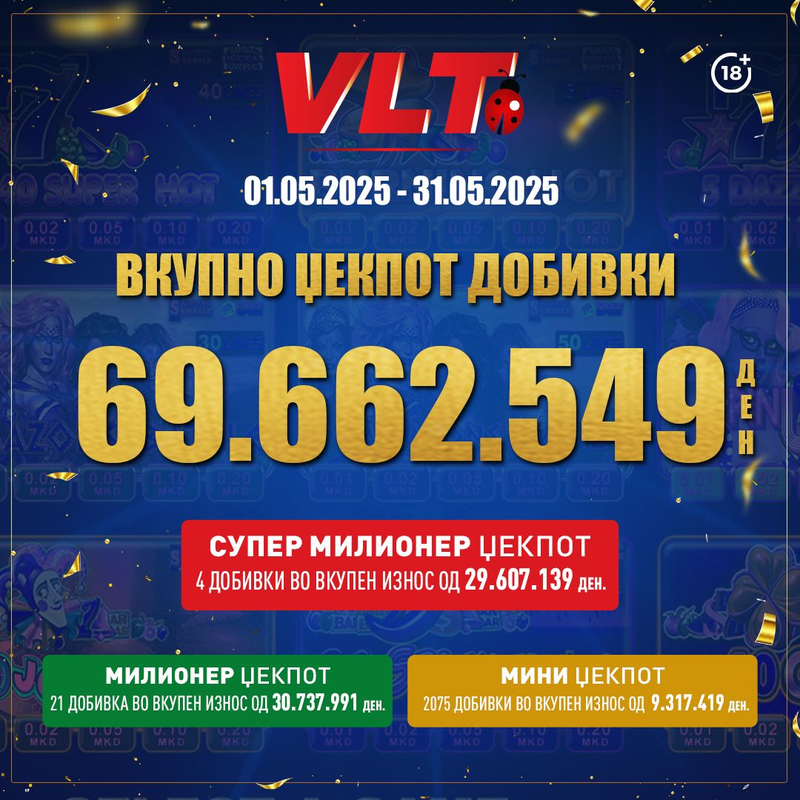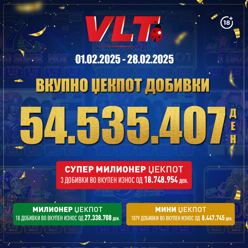 СУПЕР ДОБИТЕН МАРТ СО ВЛТ: ВИДЕОЛОТАРИЈА КАСИНОС АВСТРИЈА НА ИГРАЧИТЕ ИМ ИСПЛАТИ 64.182.837 ДЕНАРИ