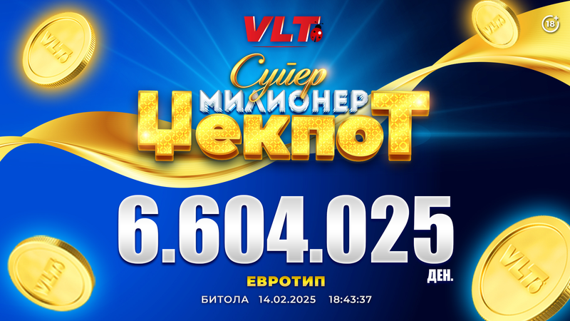СРЕЌНИ ВЛТ ВЕСТИ: П.Ѓ. ОД БИТОЛА ОСВОИ СУПЕР МИЛИОНЕР ЏЕКПОТ ОД 6.604.025 ДЕНАРИ