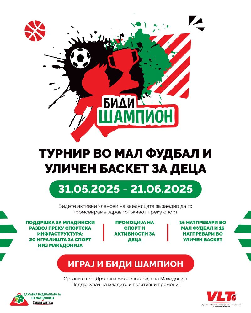 „БИДИ ШАМПИОН“-СПОРТ И ДРУГАРСТВО НА ТЕРЕН: ТУРНИР ВО МАЛ ФУДБАЛ И УЛИЧЕН БАСКЕТ