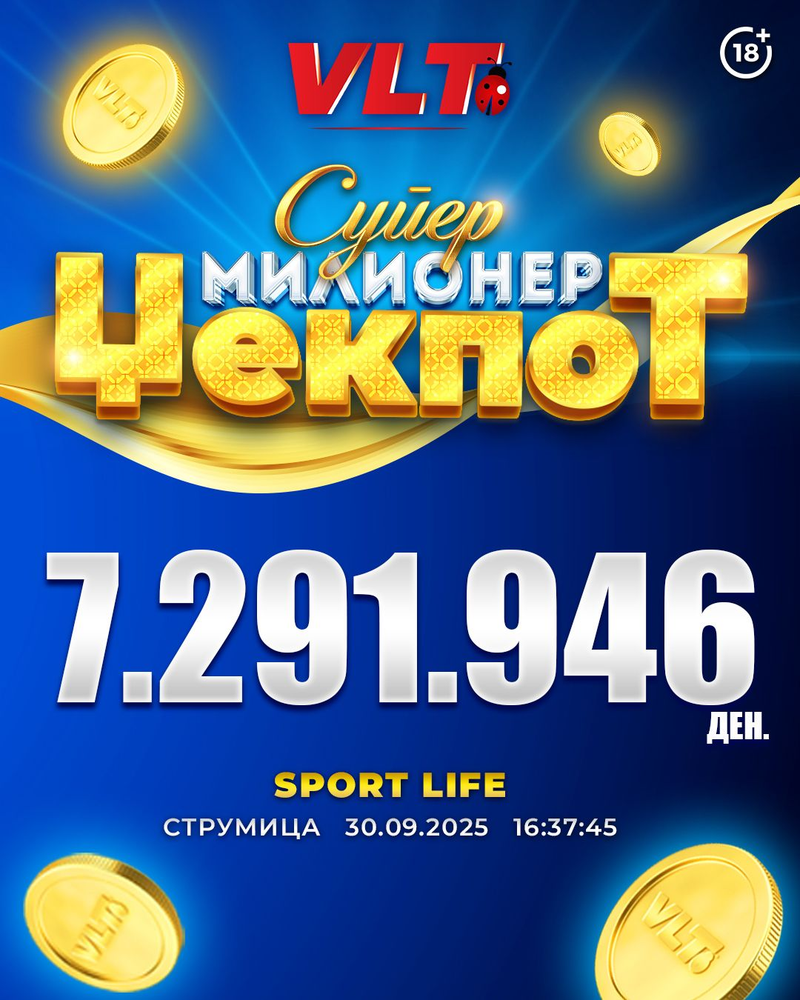 СРЕЌНИ ВЛТ ВЕСТИ: З.В. ОД СТРУМИЦА ОСВОИ СУПЕР МИЛИОНЕР ЏЕКПОТ ВРЕДЕН 7.291.946 ДЕНАРИ
