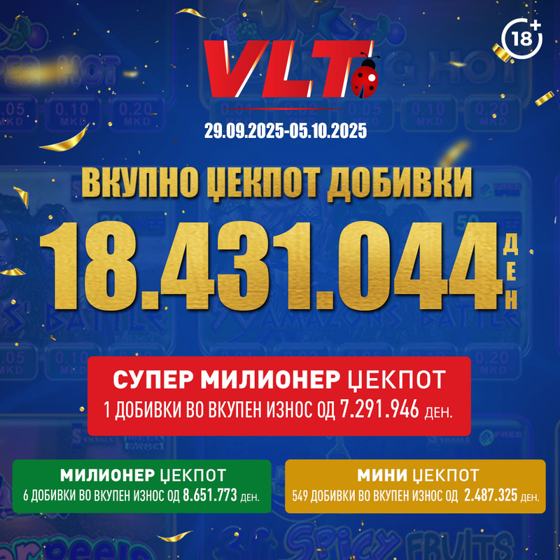 ПОВЕЌЕ ОД 12 И ПОЛ МИЛИОН ЕВРА, ВИДЕОЛОТАРИЈА ИМ ИСПЛАТИ НА ИГРАЧИТЕ НА ВЛТ ВО 2024